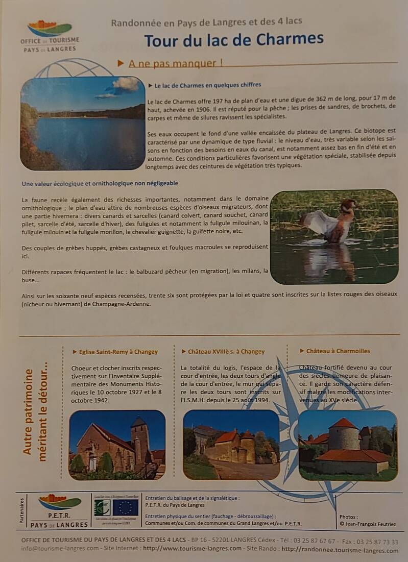 2e réservoir d’alimentation du versant nord du canal de la Marne à la Saône par sa superficie (197 ha, 13,3 km de rive), le lac de Charmes est situé à 8 km au nord de Langres.